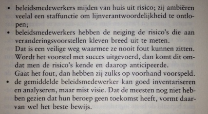 Hoewel risicomanagement veel de in Governance Risk & Compliance hoek wordt getrokken merk ik dat dit niet de goede weg is. Je krijgt de organisatie dan niet mee. Hieronder een stuk tekst uit een oud boekje over entrepreneural mangement, (1988 , Drs Kwik).