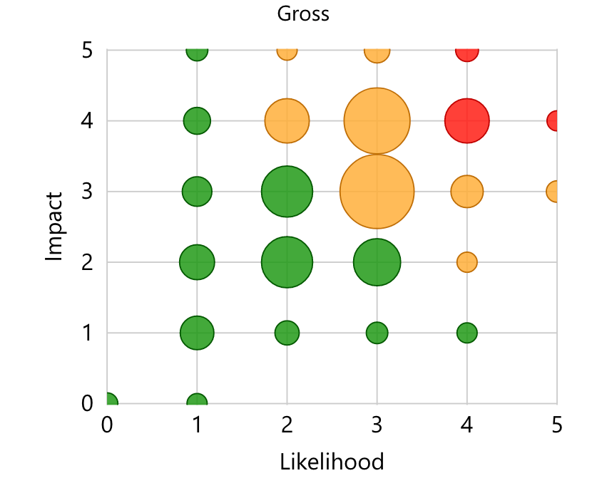 - Risicoprofiel, vergelijkbaar met de portfolioweergave, schetst de ernst van risico’s, maar richt zich op verschillende niveaus binnen de entiteit. Het risicoprofiel van een divisie of een operationele eenheid kan bijvoorbeeld in de totale P&C cyclus worden meegenomen.